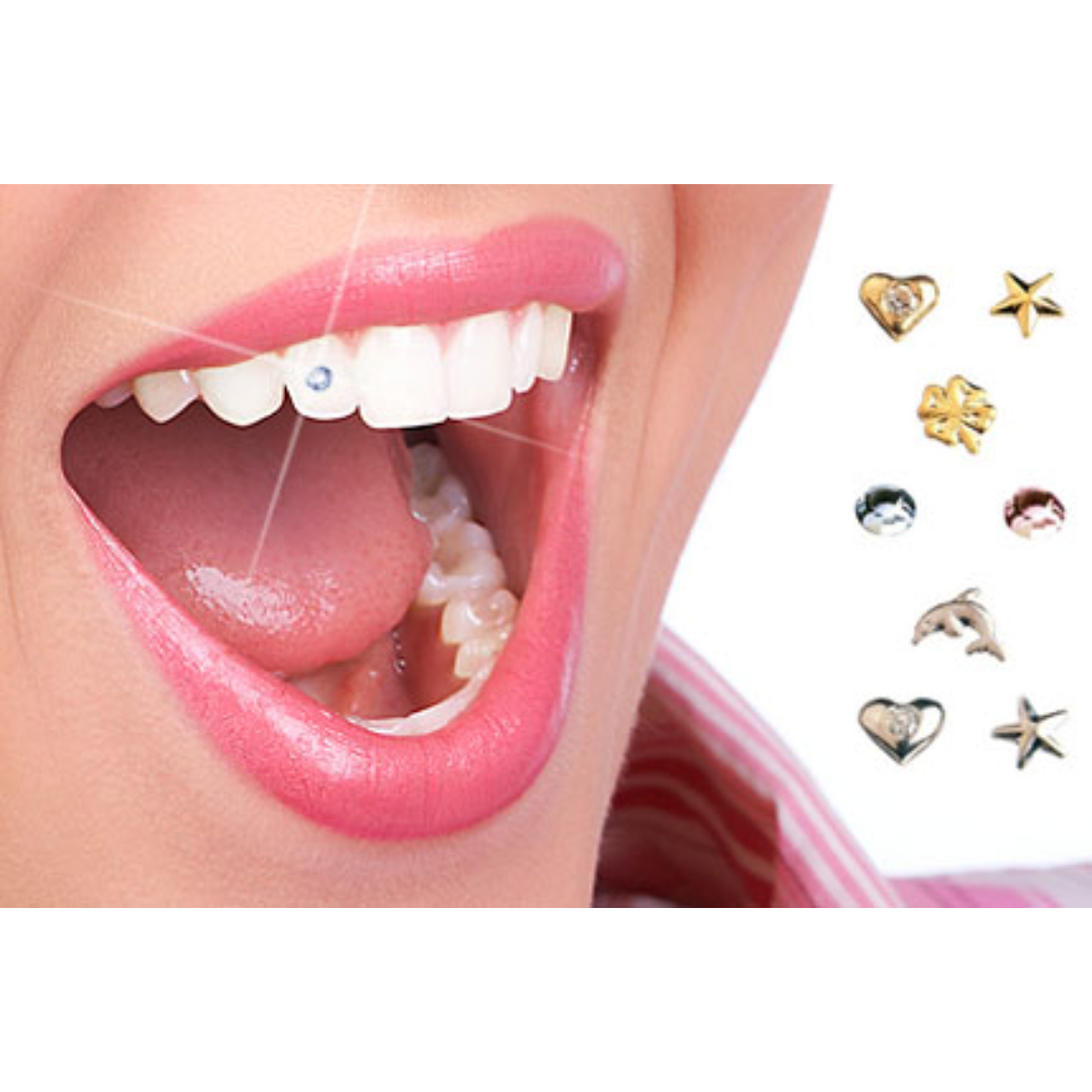 Dental jewellery, or tooth gem, is a stylish and non-invasive way to enhance your smile with a touch of sparkle. It involves attaching tiny gems, rhinestones, or crystals to the surface of a tooth using a safe dental adhesive. The procedure is quick, completely painless, and does not require any drilling or injections. It typically takes just about 15 minutes and can be easily removed or replaced without causing any damage to the tooth enamel. Ideal for those looking to make a bold fashion statement or add a unique touch to their smile, tooth gems are gaining popularity for their simplicity and visual appeal.
